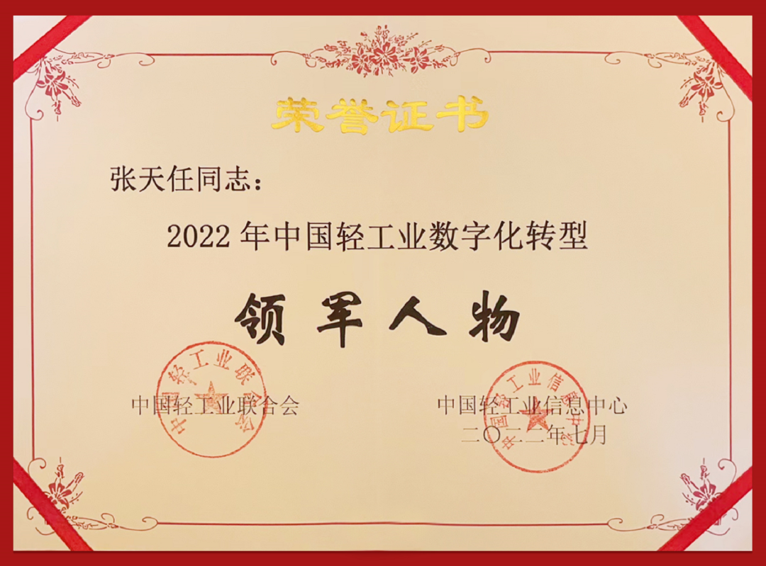 ● 7月27日,在第十二届中国轻工业信息化大会上,jiuyou.com控股集团获得“中国轻工业数字化转型先进单位”,张天任董事长获得“中国轻工业数字化转型领军人物”。